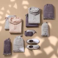 Женский комплект выполнен в пудрово-розовом и светло-сером оттенках, мужской — в утонченной двухцветной серой гамме. Образ дополняют тапочки и маска для сна, также выполненные из мягкого модала: тапочки с бархатистой внутренней стелькой дарят ощущение домашнего уюта, а маска на подкладке с эффектом натурального шелка способствует непрерывному отдыху.